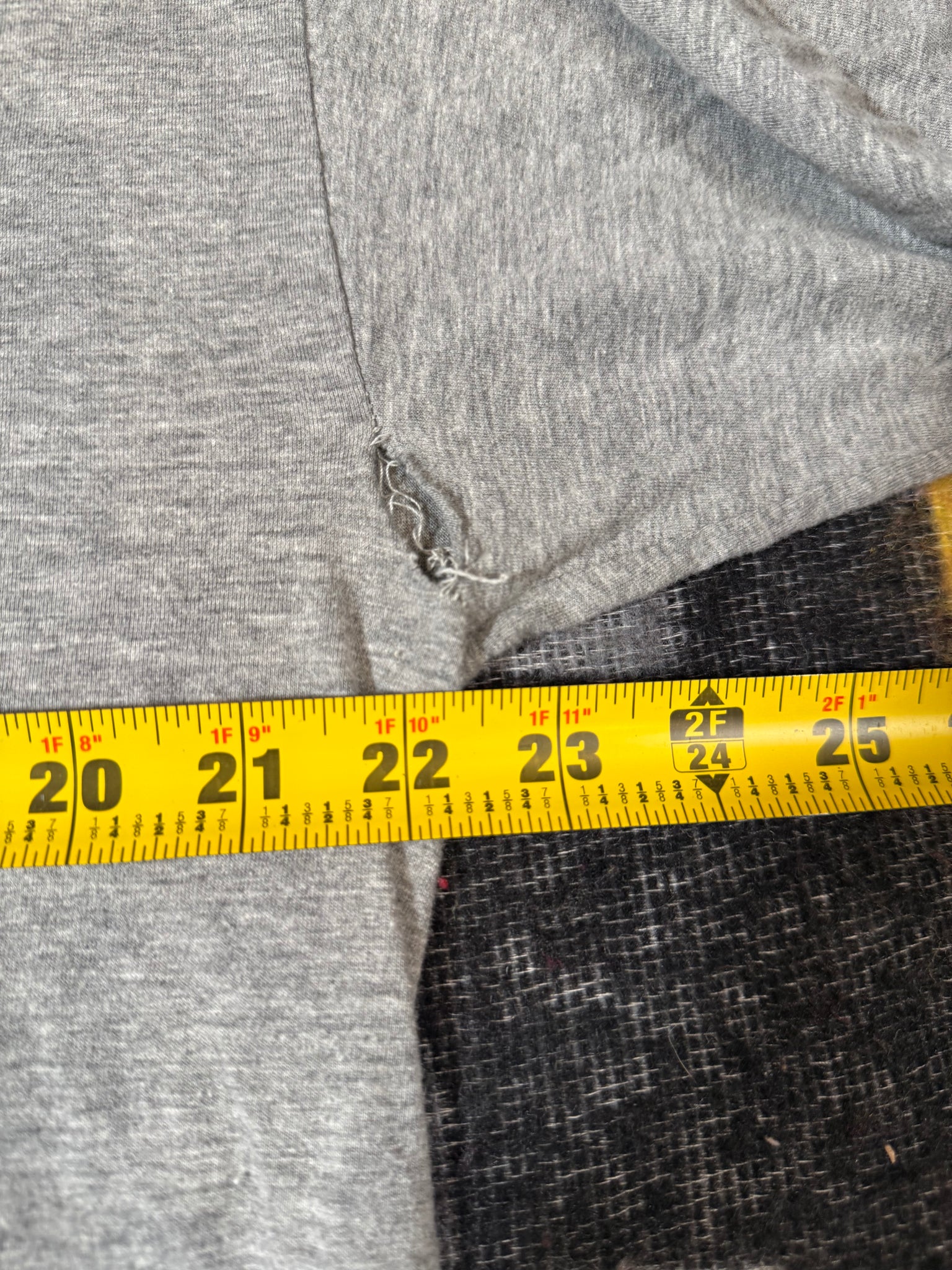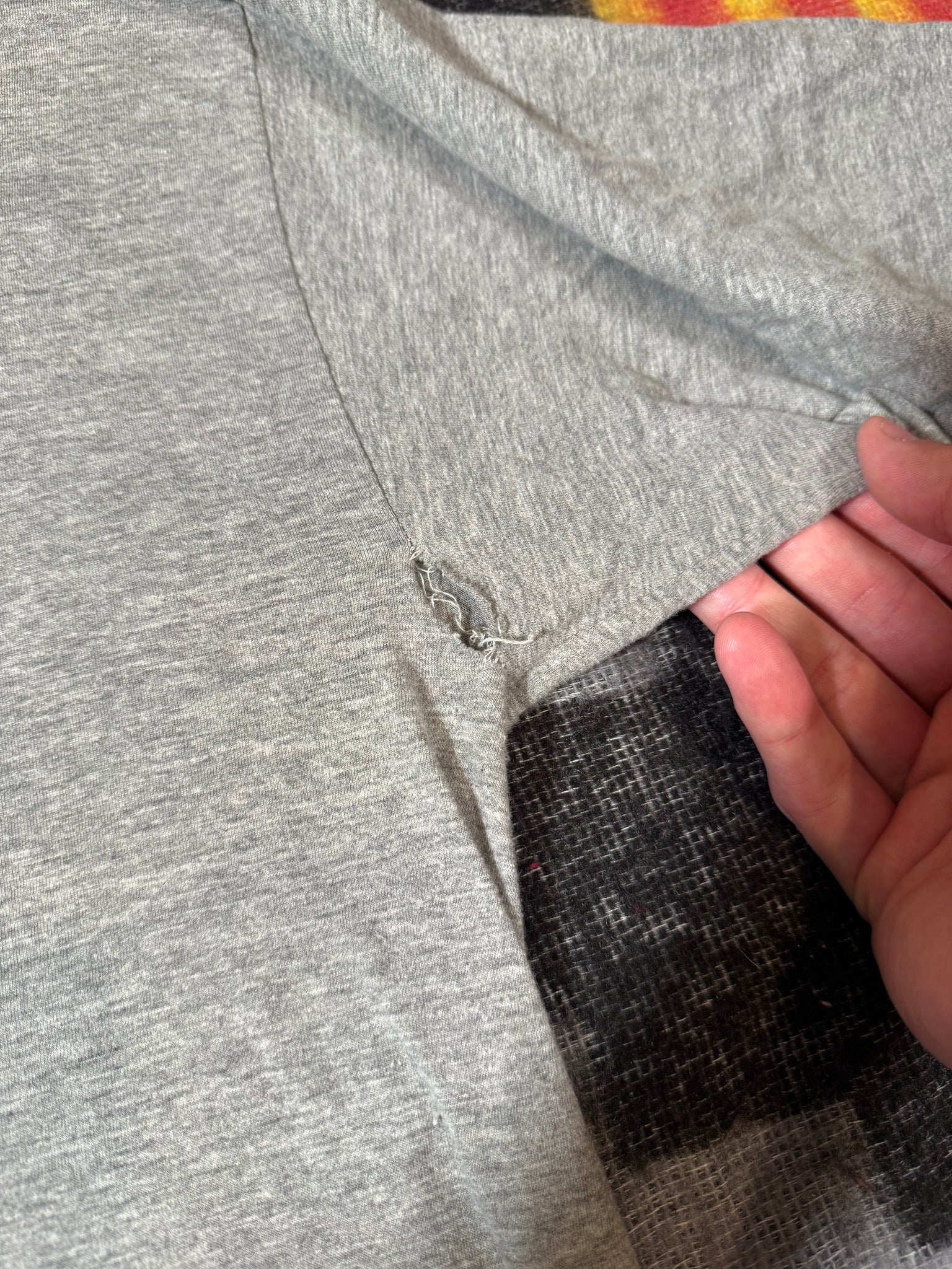 has holes in both armpits along sleeves, shown