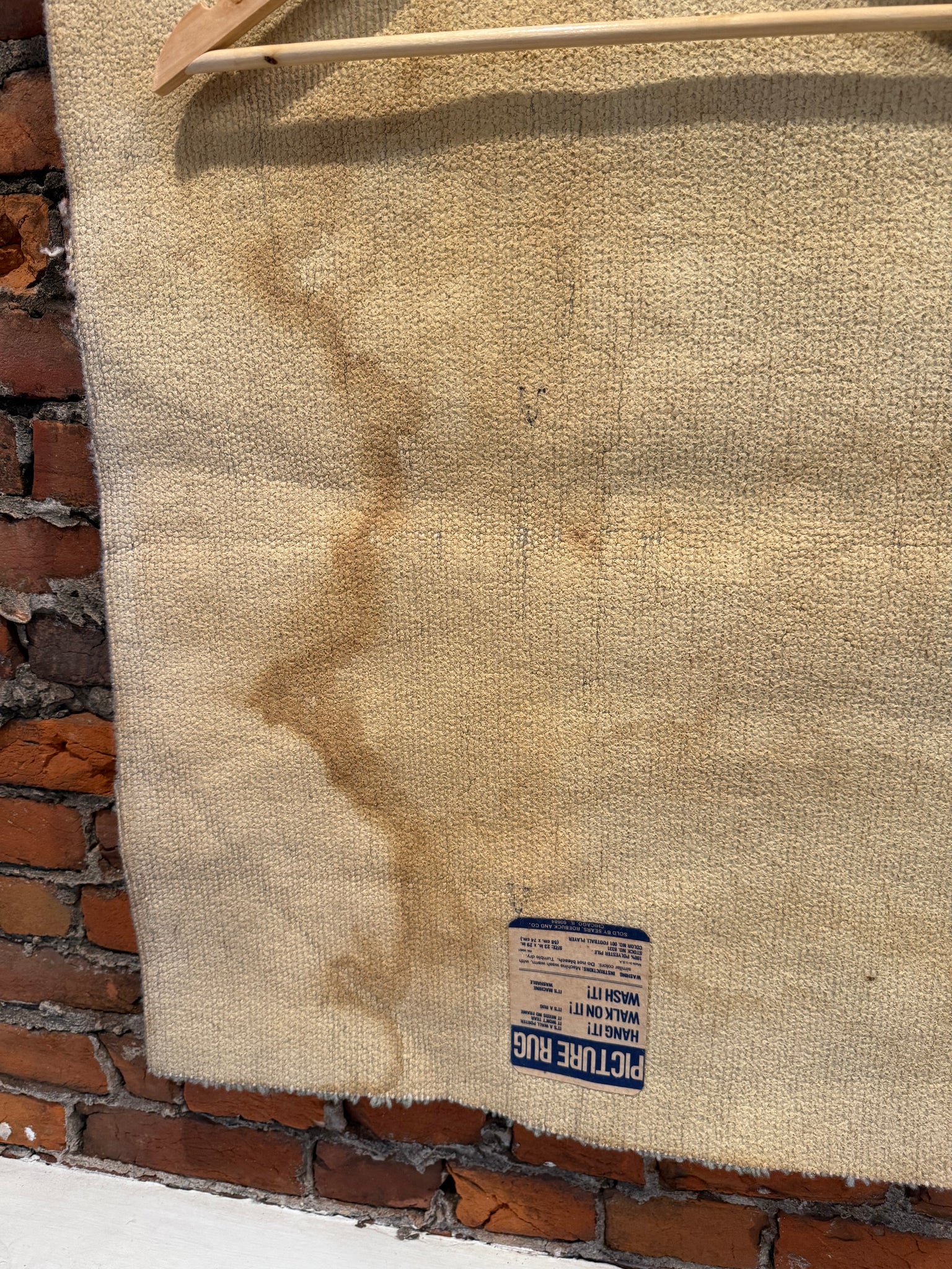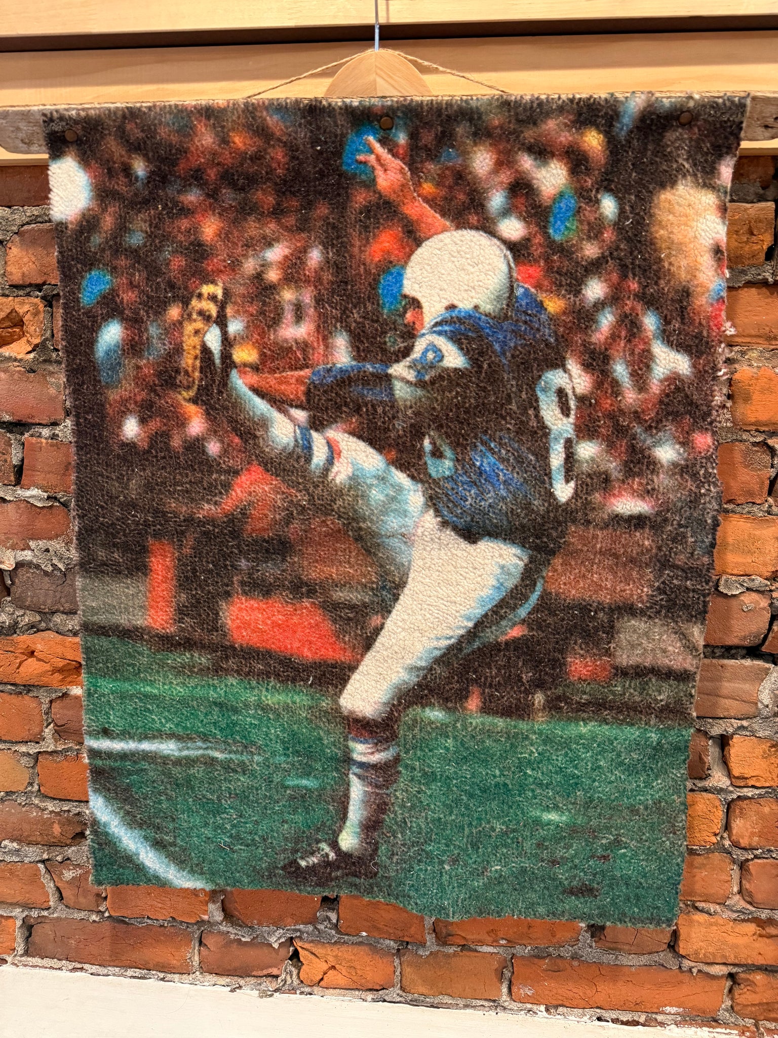 Vintage 70s Sears Football Player Picture Rug