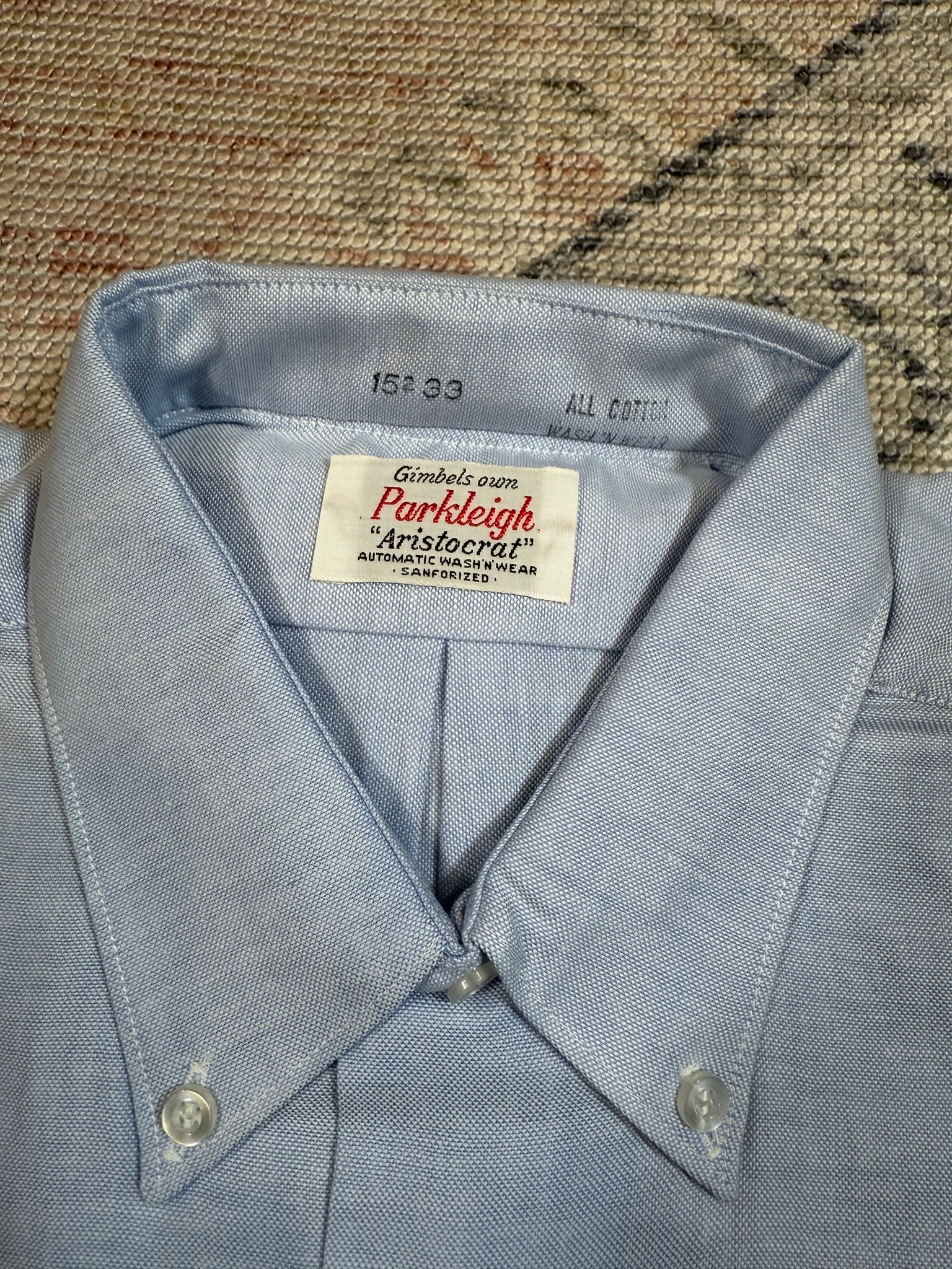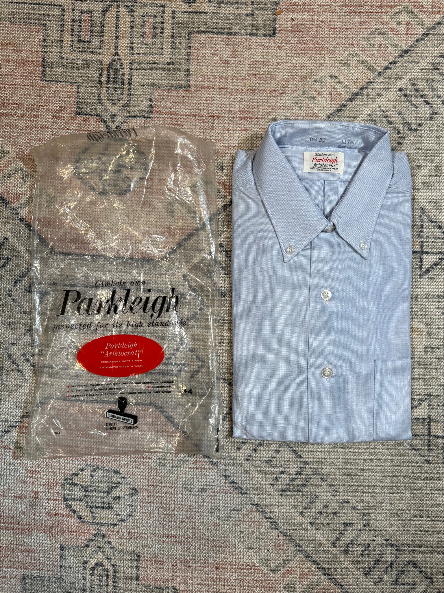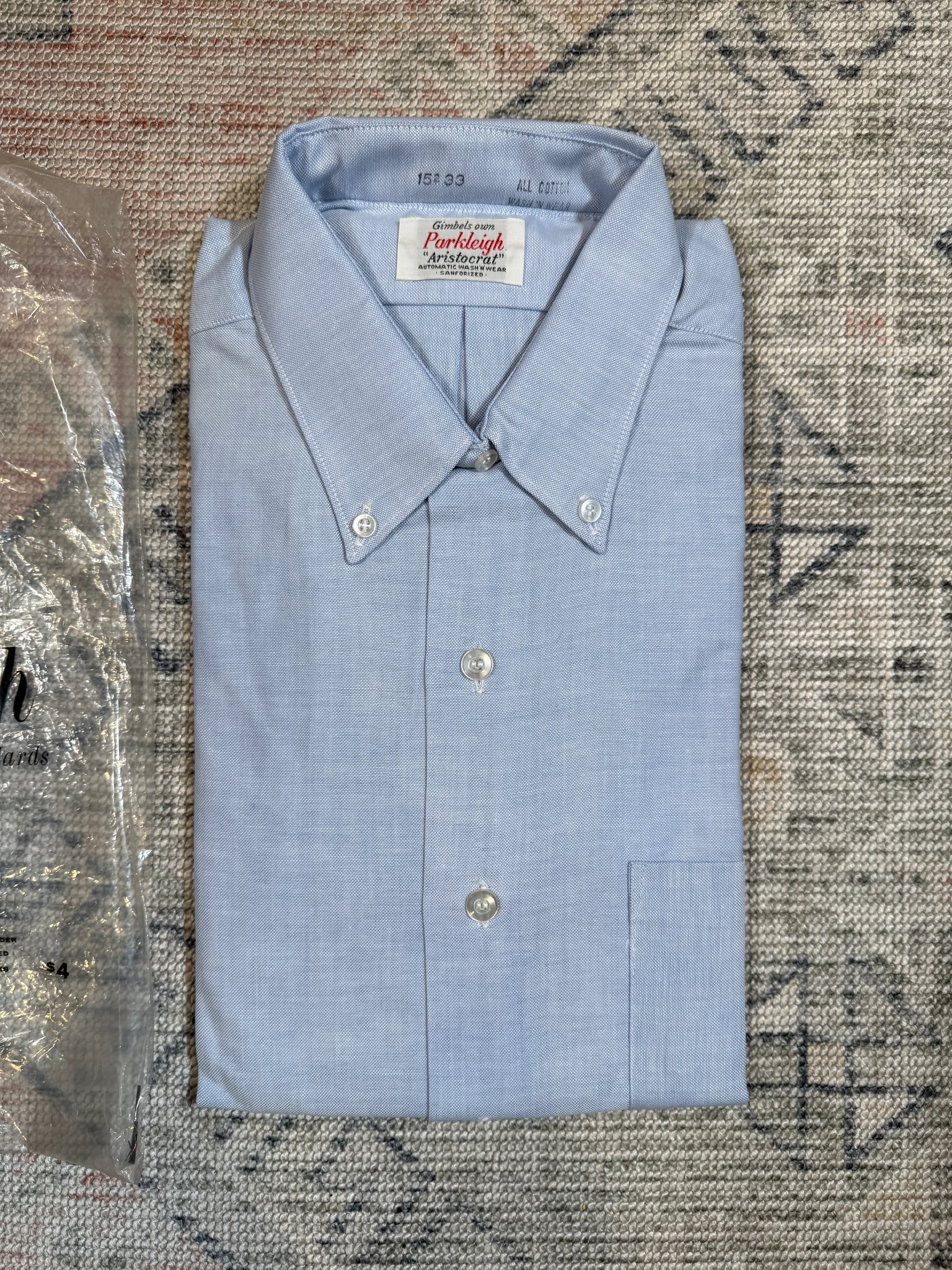 Size: never unfolded, tagged a 15 33, which seems to be around a mens medium